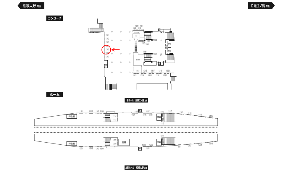 「小田急 湘南台駅 №1305」は改札外コンコースに設置された広告看板です。