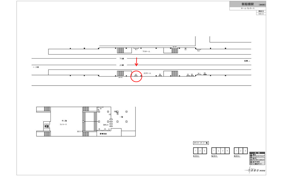 東武野田線=アーバンパークライン 新船橋駅の上りホームの看板です。