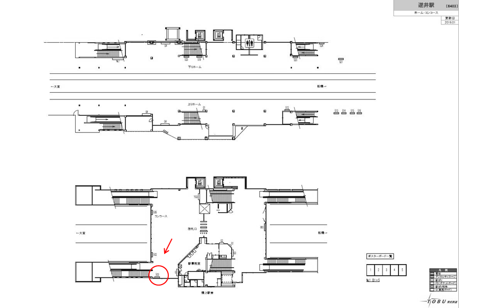 東武野田線=アーバンパークライン 逆井駅改札付近の看板です。