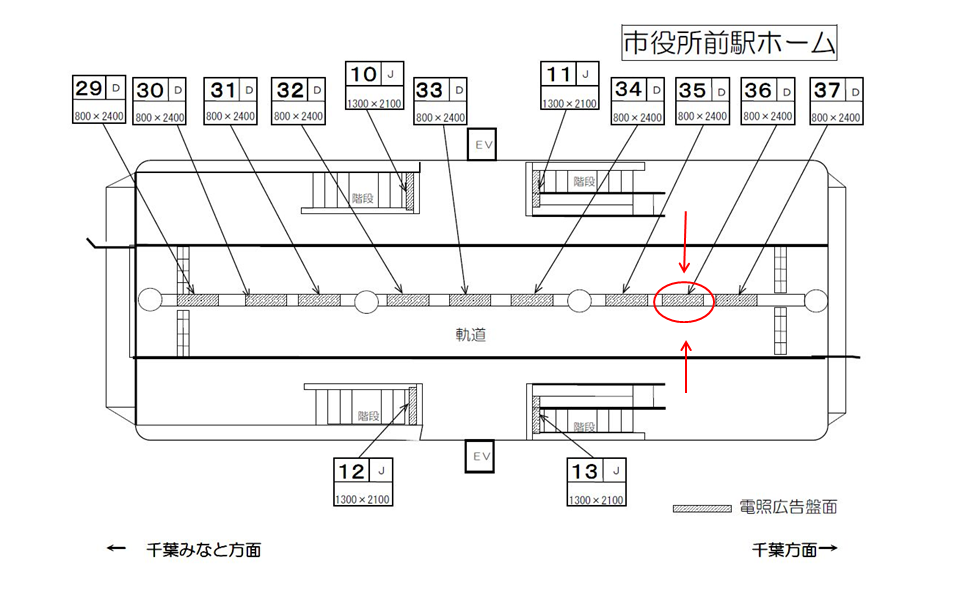 千葉都市モノレール市役所前駅、ホームにある広告看板です。