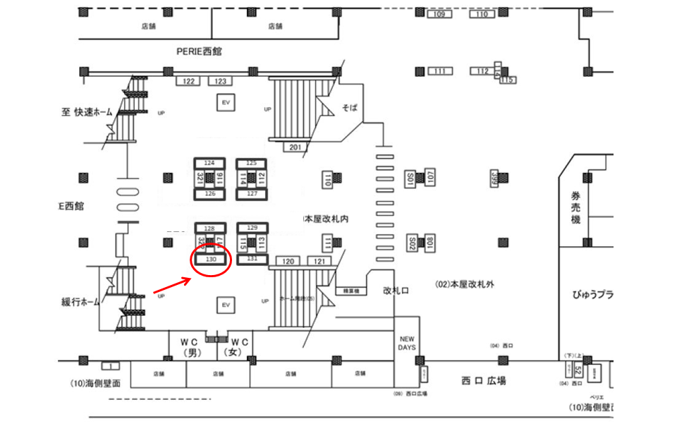 №130は主に中央総武線各駅停車ホームの東京寄りのホーム階段を降りてきた方へ向けた広告展開が可能です。