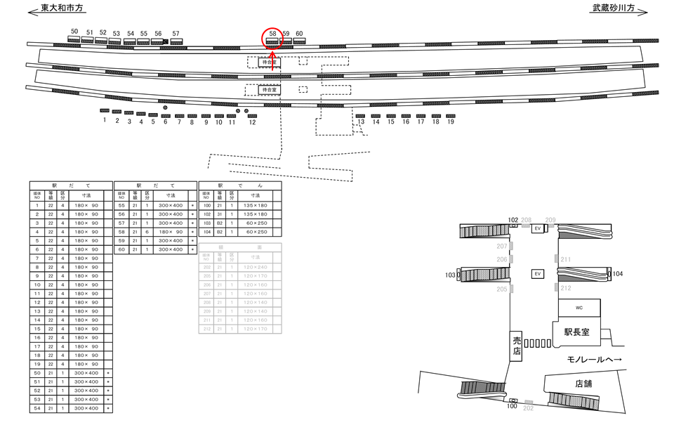 「西武 玉川上水駅 駅だて№58」は、線路前(拝島線、拝島方面)に設置された広告看板です。