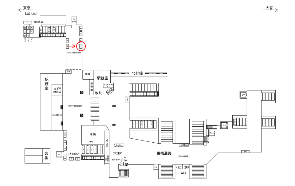 改札内コンコース(ホーム階段正面 JR京浜東北線上りホーム)