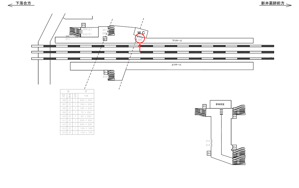 「西武 中井駅 額面№206」は、ホーム(所沢・本川越・拝島方面)設置された広告看板です。