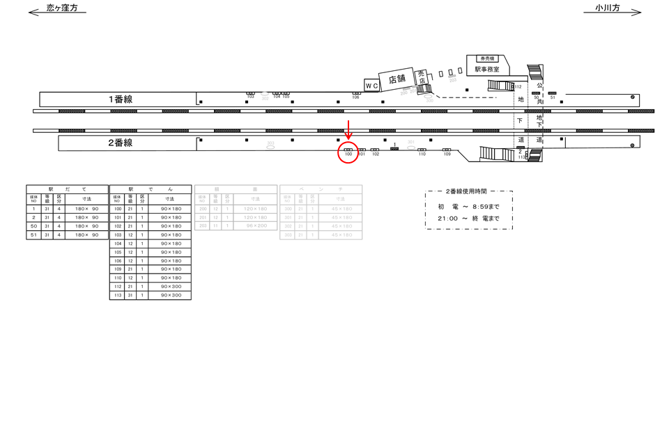 駅看板駅看板(西武国分寺線上りホーム・西武国分寺線下りホーム・改札内コンコース)、ポスターボード(西武国分寺線下りホーム)などの広告設備がございます。