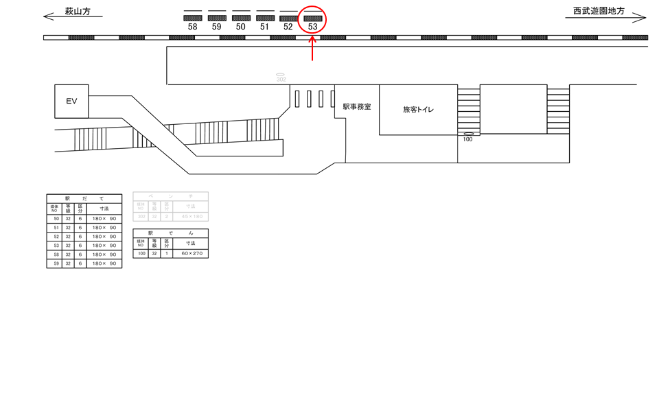 西武 武蔵大和駅/駅だて№53(区画1・2)№2駅看板・駅広告、位置図