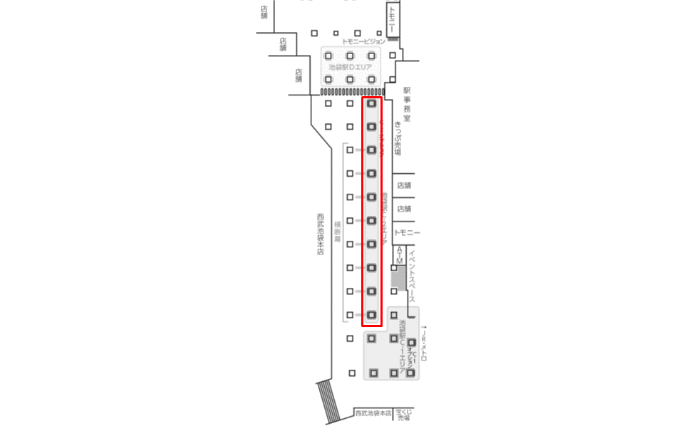 こちらのデジタルサイネージ広告は、地下1階の改札外コンコースで展開する映像広告です。JRやメトロその他私鉄と西武池袋線を結ぶ同線上にございます。西武 池袋駅利用者を対象とした広告に有効です。