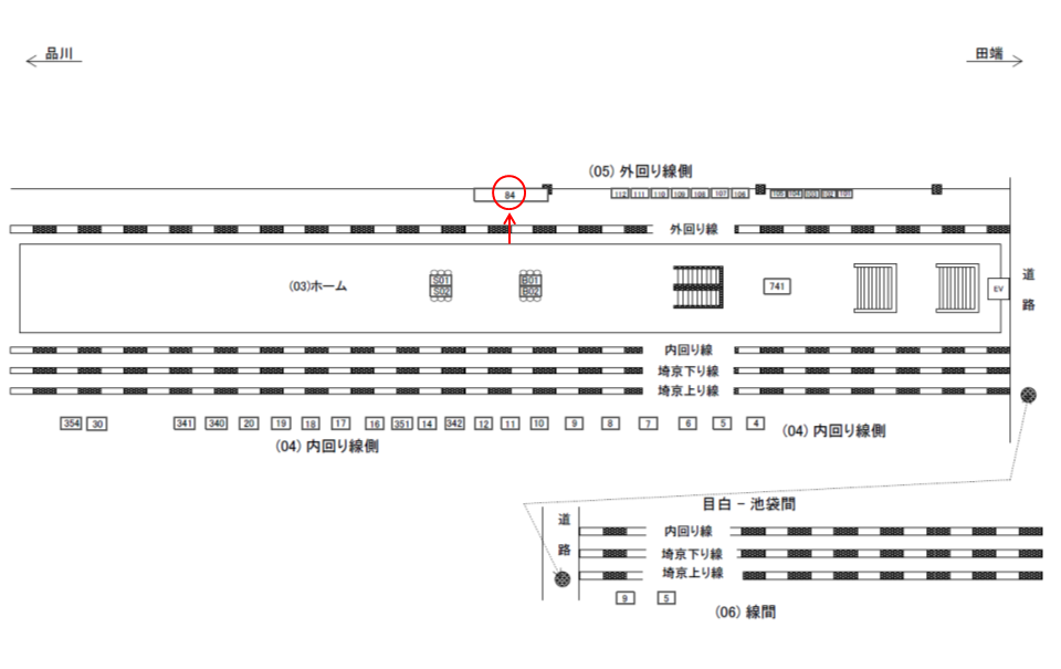 ○外回り線側№110 線路前(JR山手線外回り 池袋・上野・東京方面) |