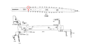 №1はホームの中でも桜田通り方面改札寄り、A1~A13出口方面へ向かう階段付近にございます。(日比谷線と丸ノ内線への乗換もこちら側です)