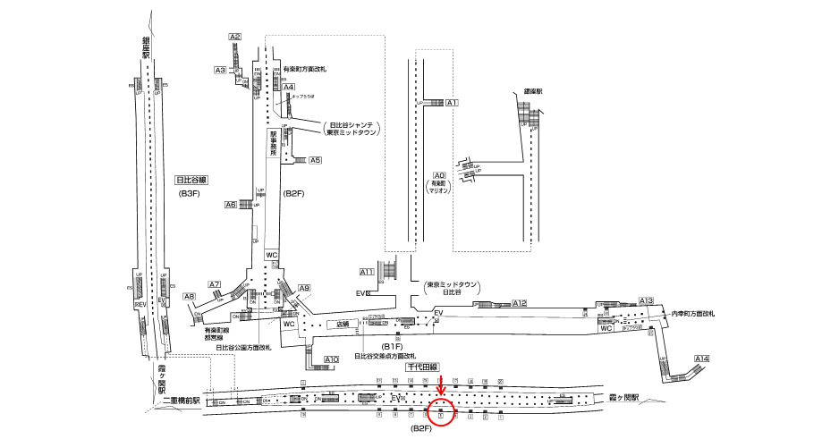 東京都千代田区に所在する東京メトロ 日比谷線・千代田線の停車駅。また、都営三田線、JR線(JR有楽町駅)にお乗り換えができます。
