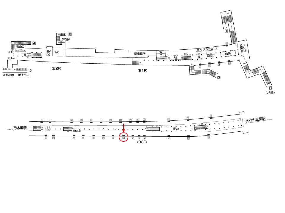 ○千代田線№2 線路前(東京メトロ千代田線 代々木上原・伊勢原方面) |