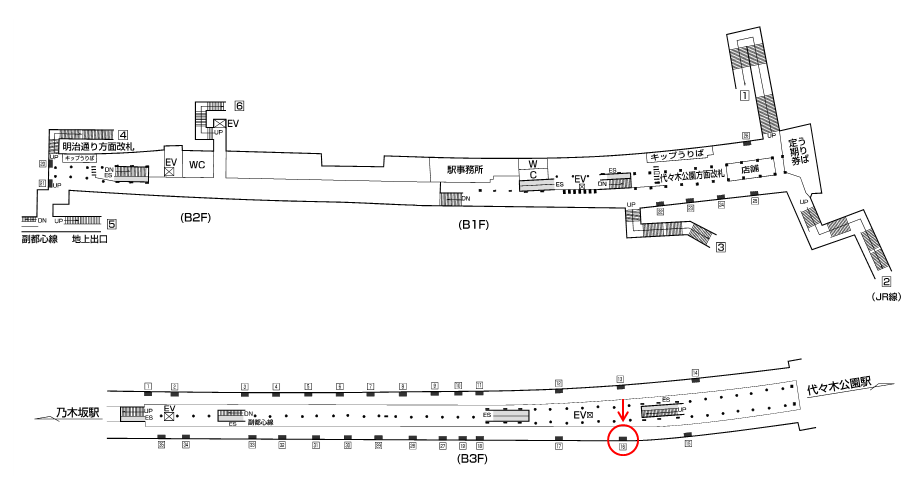 ○千代田線№6 線路前(東京メトロ千代田線 代々木上原・伊勢原方面) |