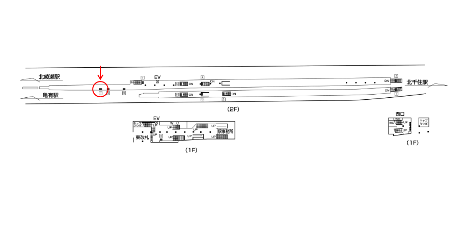 こちらの駅看板は「これから駅を出る方」に見てもらえます。階段付近は駅利用者が集中するエリアで目に留めてもらいやすい広告ロケーションです。サービス周知や企業広告などに適しており、日常的に駅を使う「綾瀬駅に生活基盤をもつ消費者」を対象とした広告にオススメです。