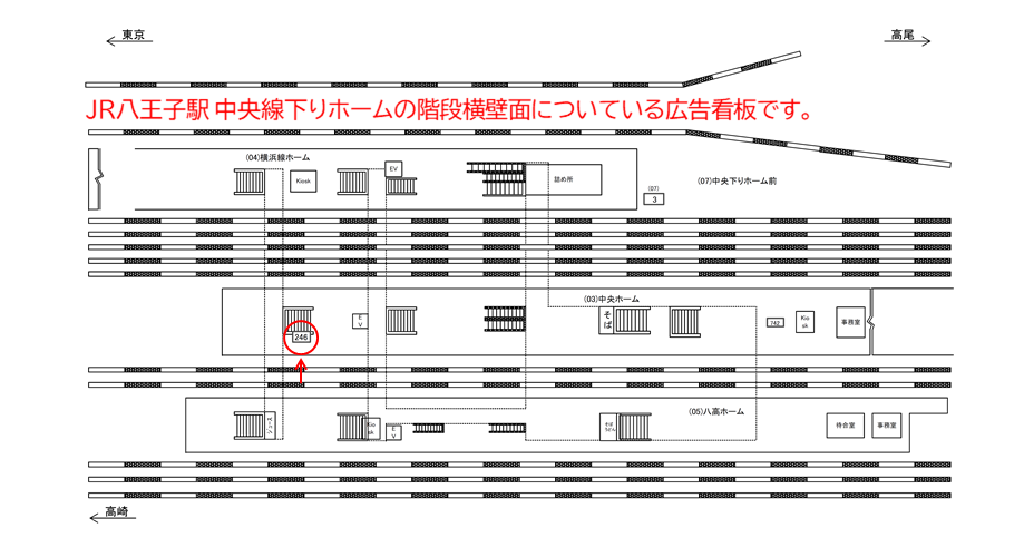 JR 八王子駅、ホームの駅広告(駅看板)です。