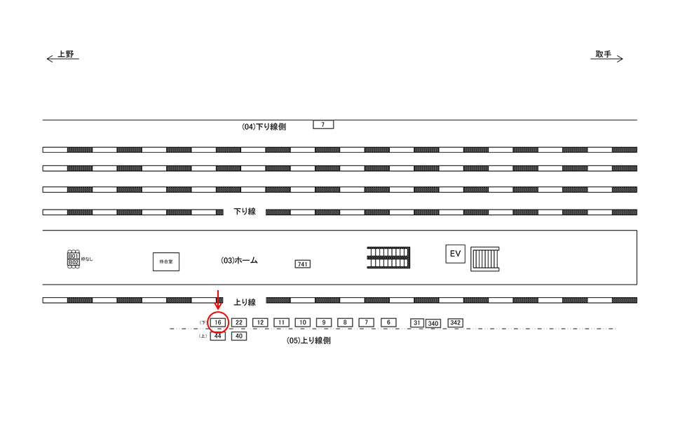 常磐線各駅停車の上り線路前に設置された電飾タイプの広告看板です。松戸・北千住・代々木上原方面への電車を待つ方の正面に位置します。電車待ち時間を利用した広告訴求が行なえます。上り線側№16はホーム看板の中でも最も先頭の松戸駅寄りにございます。