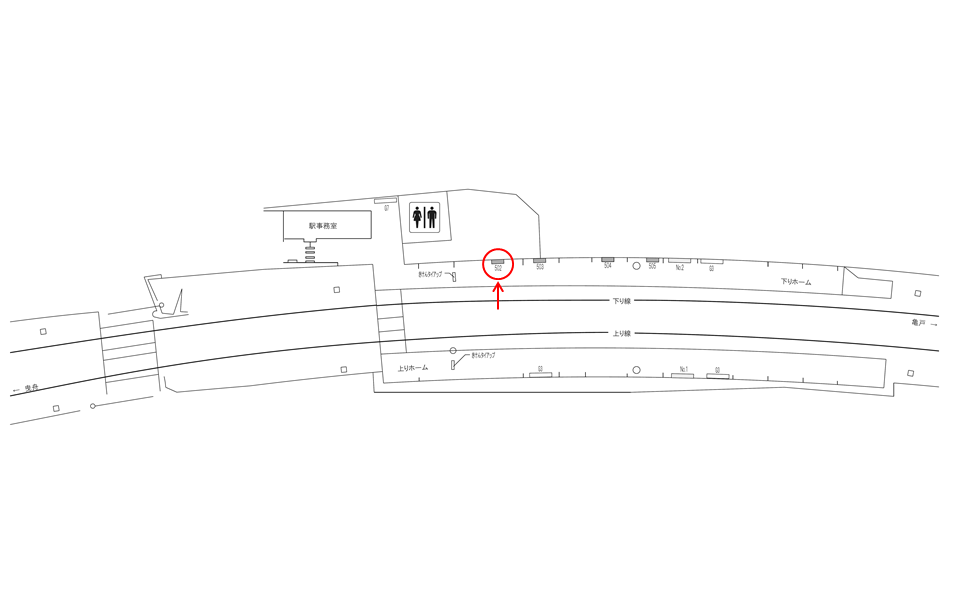 東武亀戸線 亀戸方面ホーム壁面に設置された広告看板です。ホームで乗車を待つ方への広告としてご利用になれます。№502はホーム看板の中でも改札寄りで、駅利用者の往来がホームの中でも多い場所となります。ホーム上を行き来される方、電車を待つ方を対象とした広告にご活用ください。
