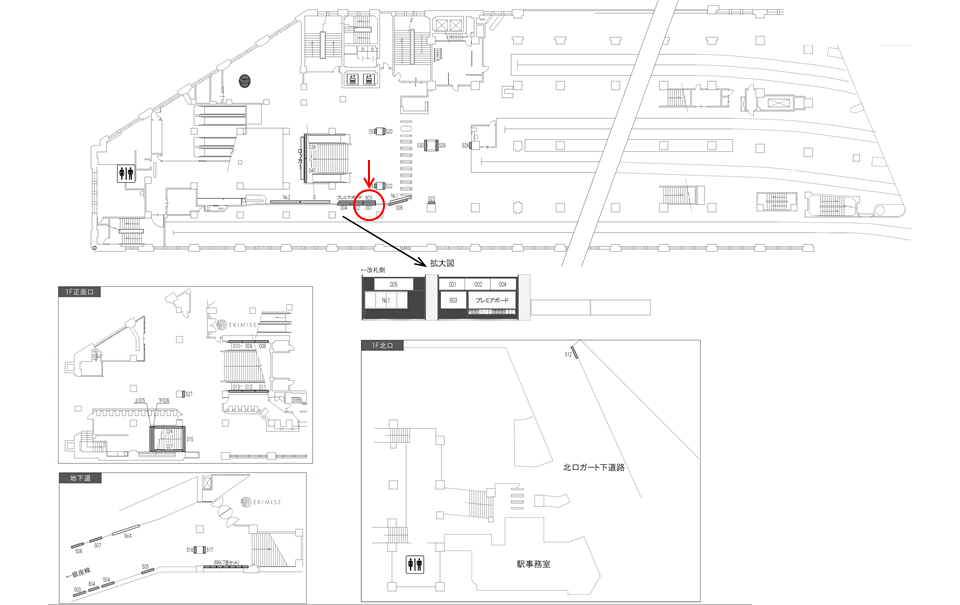 改札外コンコース、改札階(2階)に設置された電飾タイプの広告看板です。浅草駅の正面改札口を出て左側壁面にあり、終日を通して往来の多いエリアです。駅利用者の移動動線上にございますので、近隣の店舗施設の周知や誘導案内に適したロケーションです。※こちらの看板№1は正面改札口を出た際は左手前の柱がぶります。改札へ向かう際がもっとも利用者に見える向きとなります。