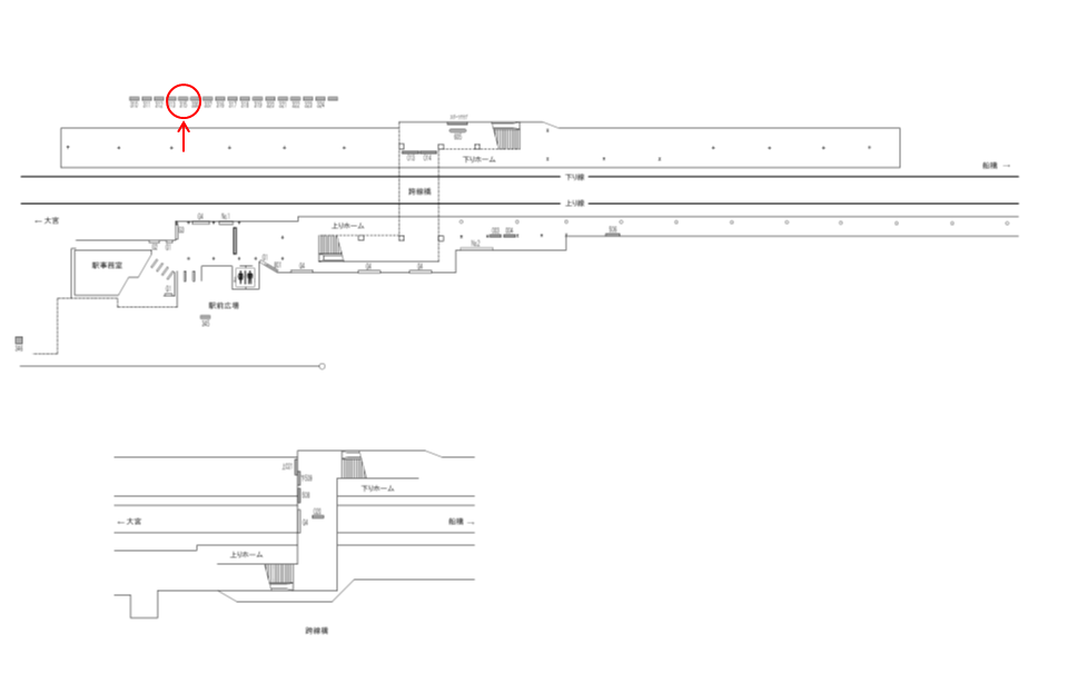 こちらの看板№315はホームの中でも大和田駅寄りにございます。向かい上りホーム(大宮方面)にはちょうど駅舎が位置しており、上りホームからは少し見えにくいロケーションとなります。ご検討の際は現地確認を合わせてお願いいたします。