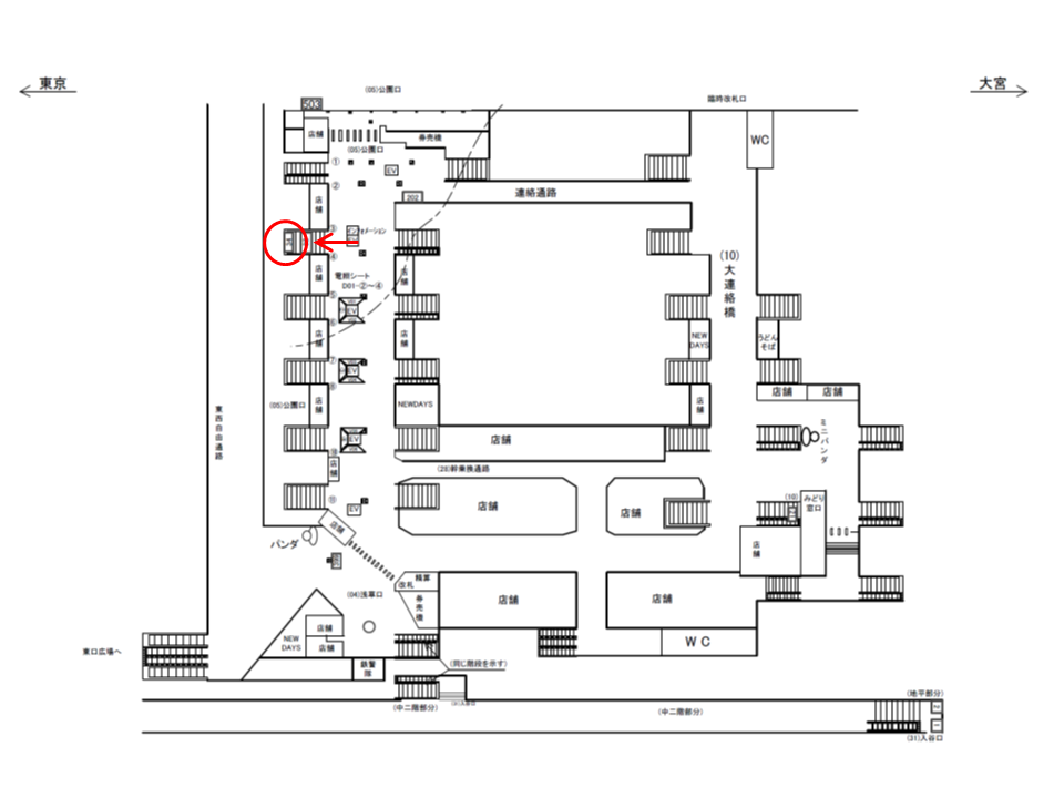 ○公園口№32 改札内コンコース(ホーム階段正面 公園口改札) |