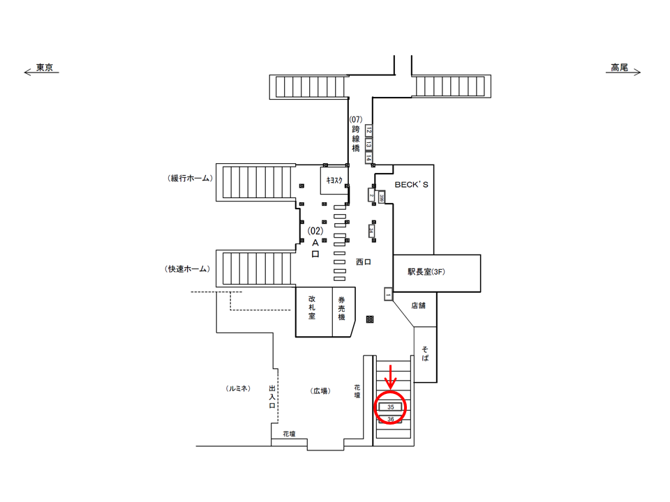 西改札を出て右側(北側方面)出口の階段正面に設置された電飾タイプの広告看板です。