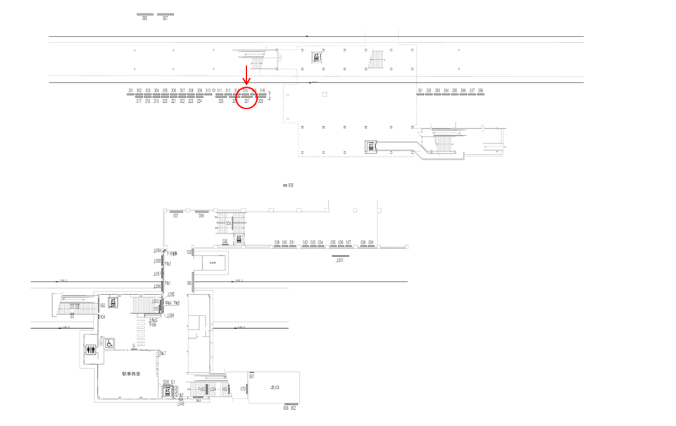 №327は東武東上線ホーム中ほどにございます。日々鶴瀬駅を定期利用されるビジネスパーソンや学生を始めとした企業ブランディングやサービス商品周知にご利用ください。