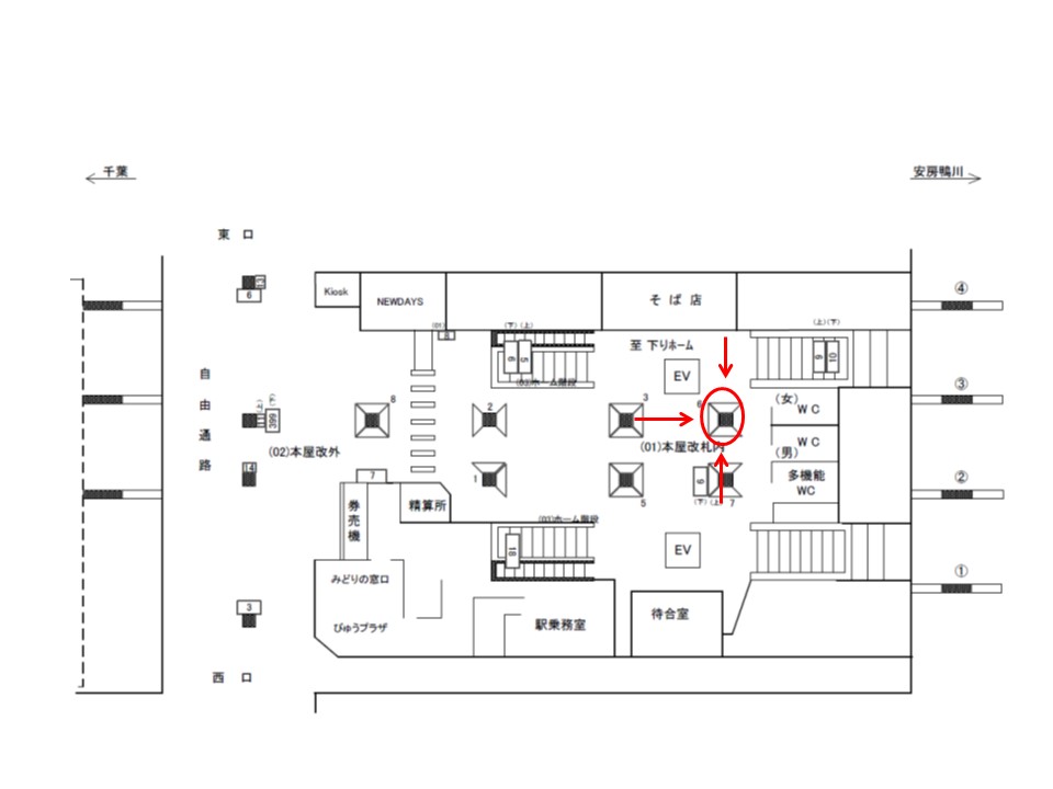 改札内中央付近に設置された柱上部にある4面体の電飾看板で利用番線を問わず様々なシーンでの広告との接触が期待できる媒体です。