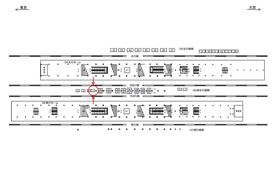○北行線側№95 線路前(京浜東北線、上野・大宮方面) |