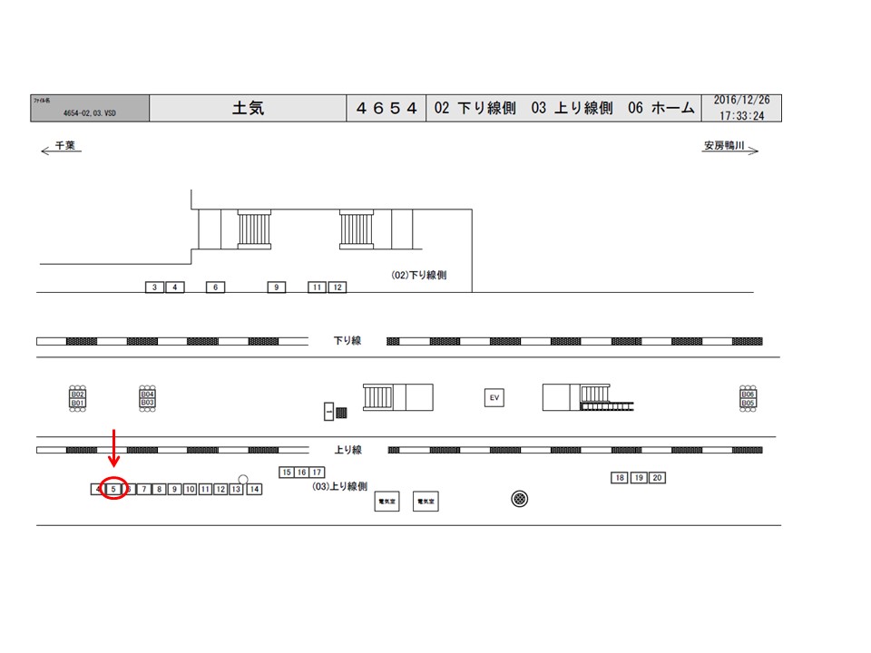 JR外房線 土気(とけ)駅の上りホーム(蘇我・千葉・船橋・舞浜・東京方面)の線路前に設置されている看板です。上りホームで電車を待つ際と停車中の車内からも視認可能です。
