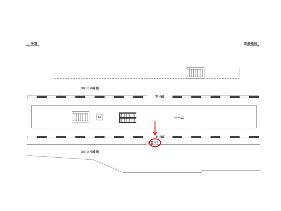 JR内房線 浜野駅の上りホーム(蘇我・千葉・船橋・舞浜・東京方面)の線路前に設置されている看板です。上りホームで電車を待つ際と停車中の車内からも視認可能です。