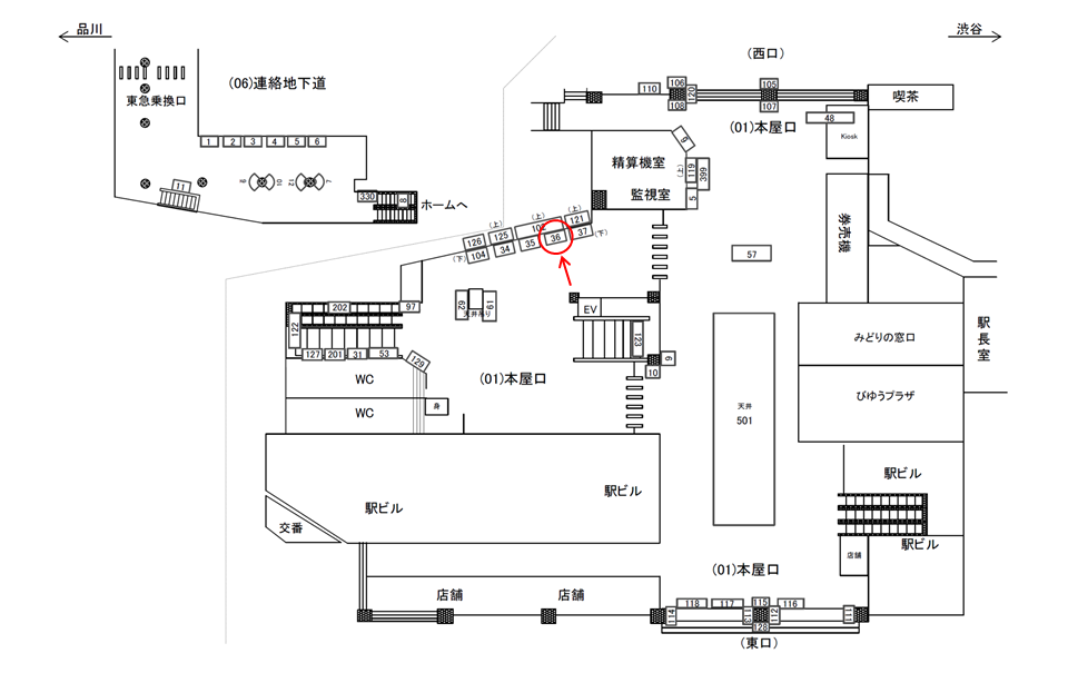 ○本屋口№116 改札外コンコース(中央改札口 東口方面) |
