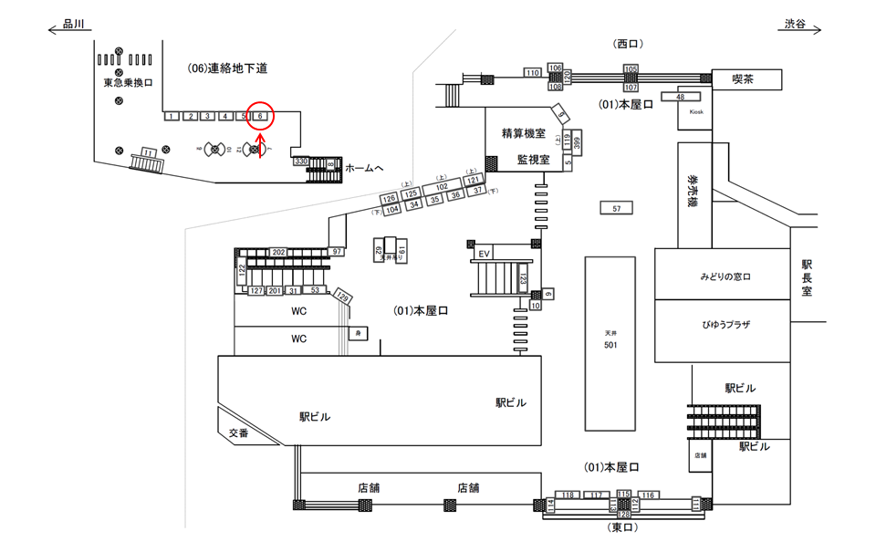 ○連絡地下道№5 改札内コンコース(東急連絡改札口) |