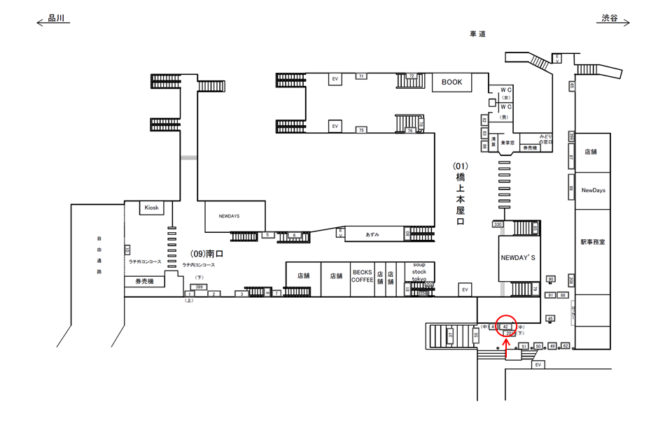 ○橋上本屋口№41 改札外コンコース(北改札口側 東口付近) |