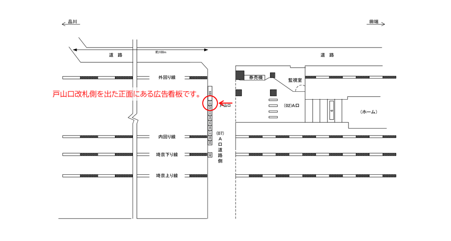 ○外回り線側№80 線路前(JR山手線外回り 池袋・上野・東京方面) |