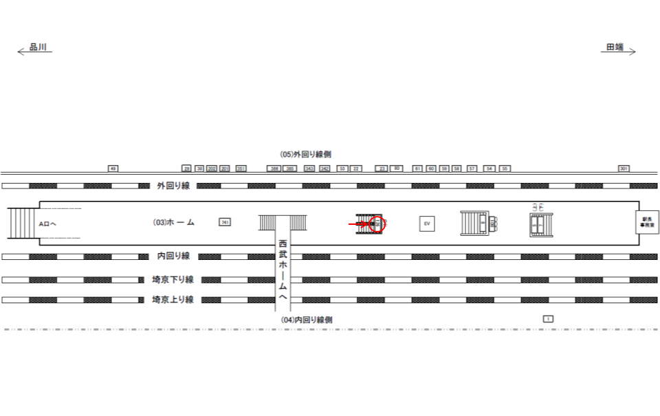 ○外回り線側№23 線路前(JR山手線外回り 池袋・上野・東京方面) |
