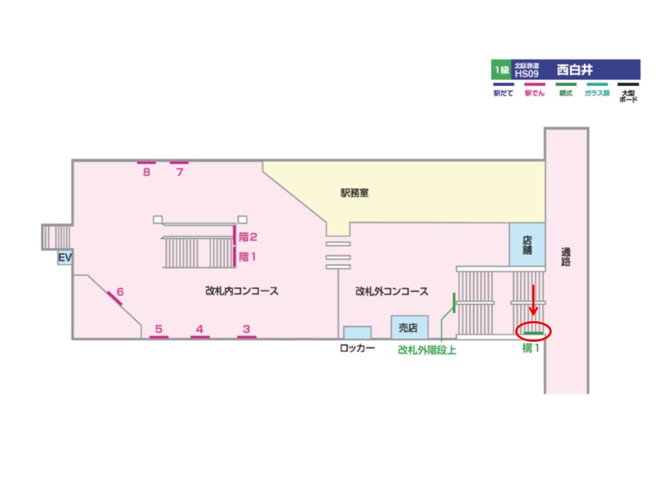 北総線西白井駅の改札外に設置されている看板です。出入り口付近に設置されており、駅構内を出入りする方に向けて毎日訴求可能です。店舗・クリニック・学習塾・スポーツクラブ等の周知目的としてご活用いただけます。