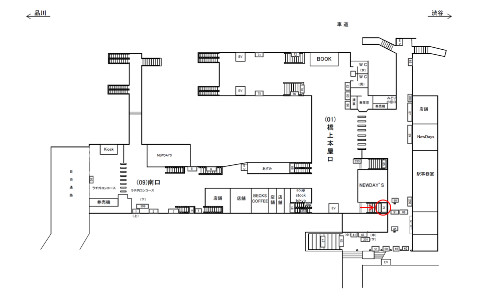 ○橋上本屋口№90 改札外コンコース(本屋改札口出口) |