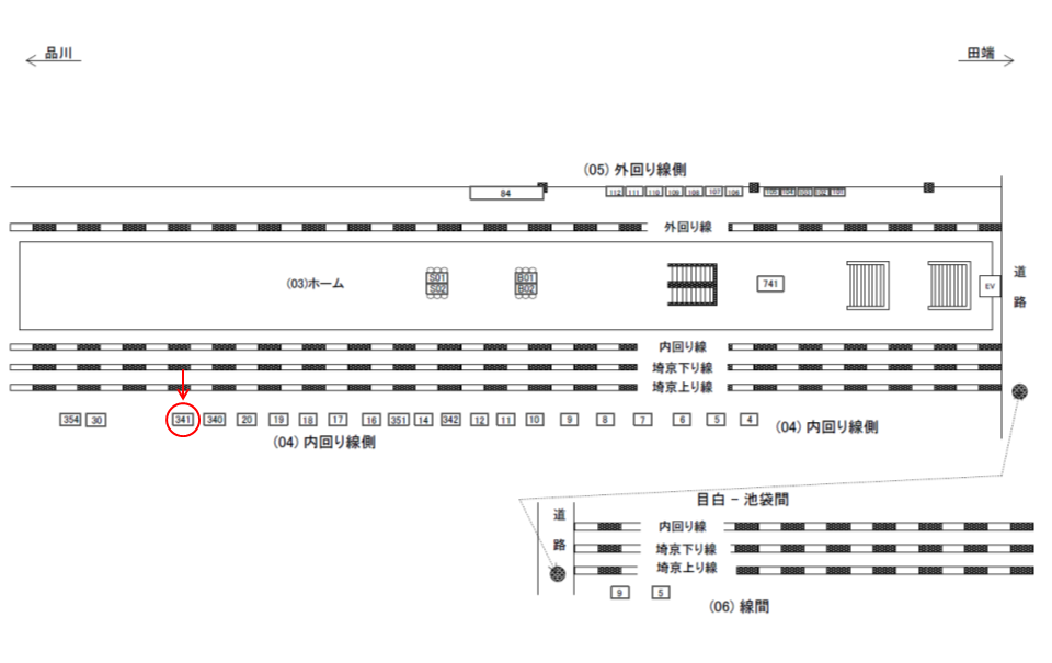 ○外回り線側№110 線路前(JR山手線外回り 池袋・上野・東京方面) |