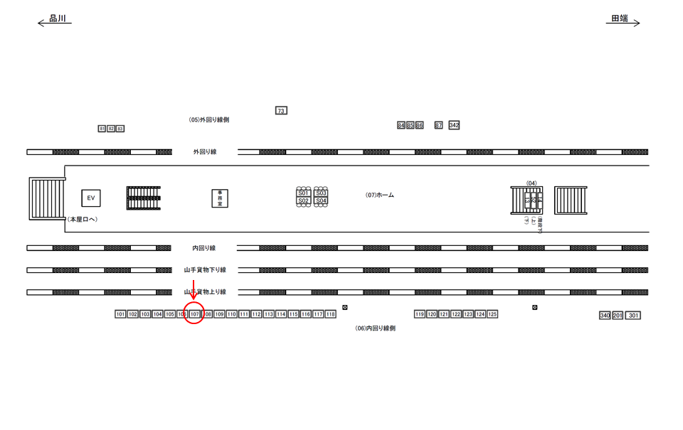 ○外回り線側№342 線路前(JR山手線外回り 田端・上野・東京方面) |