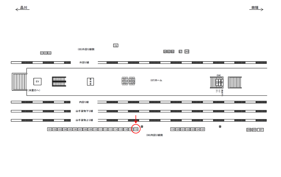 ○外回り線側№342 線路前(JR山手線外回り 田端・上野・東京方面) |