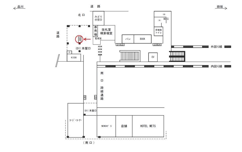○本屋口№25 改札外コンコース(南口 東京メトロ南北線乗り換え通路) |
