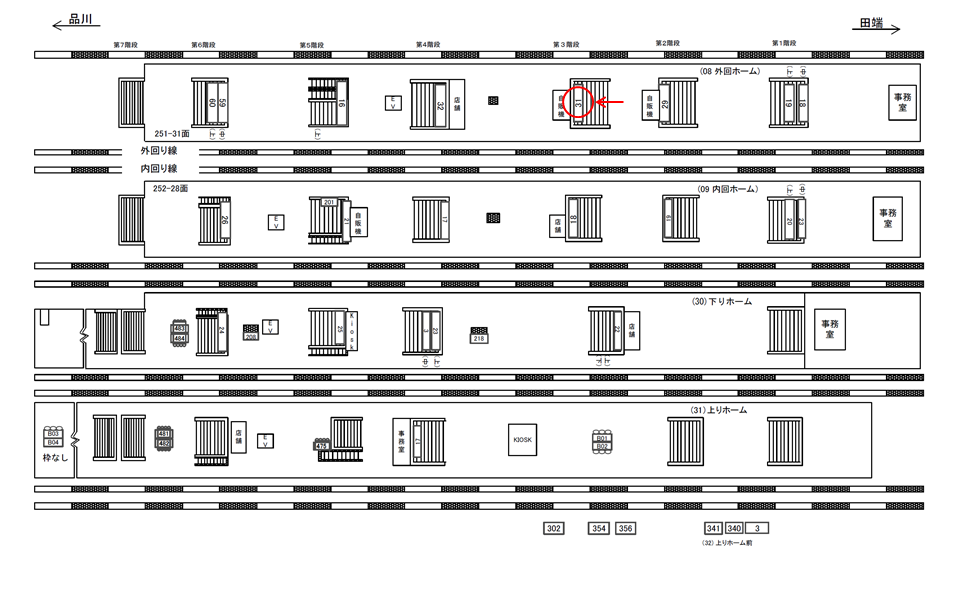 ○外回りホーム№29 ホーム上(階段正面 JR山手線外回りホーム) |
