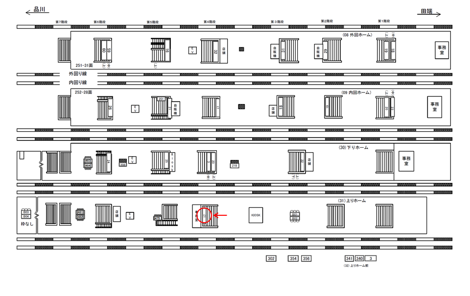 ○外回りホーム№31 ホーム上(階段正面 JR山手線外回りホーム) |