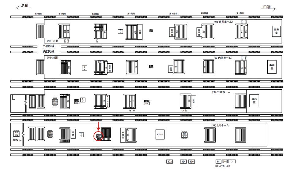 ○外回りホーム№31 ホーム上(階段正面 JR山手線外回りホーム) |