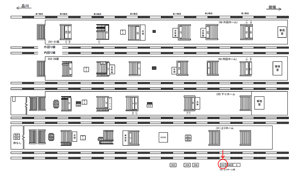 ○上りホーム前№340 線路前(JR埼京線 新宿・渋谷・大崎・りんかい線・相鉄線方面) |
