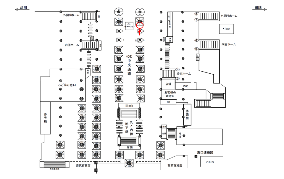 ○中央通路№136 改札外コンコース(中央通路 メトロ丸ノ内線改札付近 柱) |