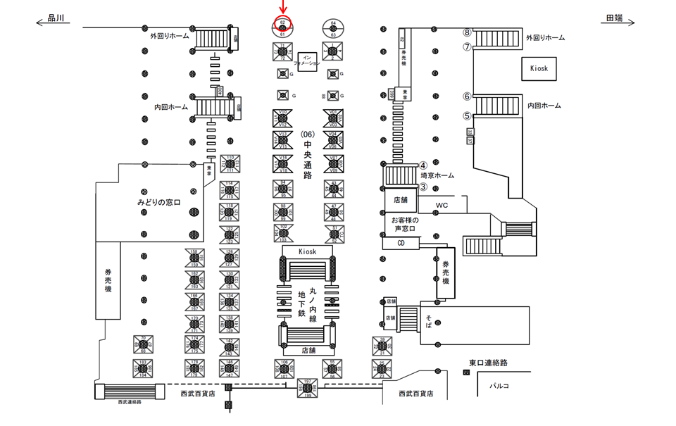 ○東口№60 改札外コンコース(階段正面 東口方面) |