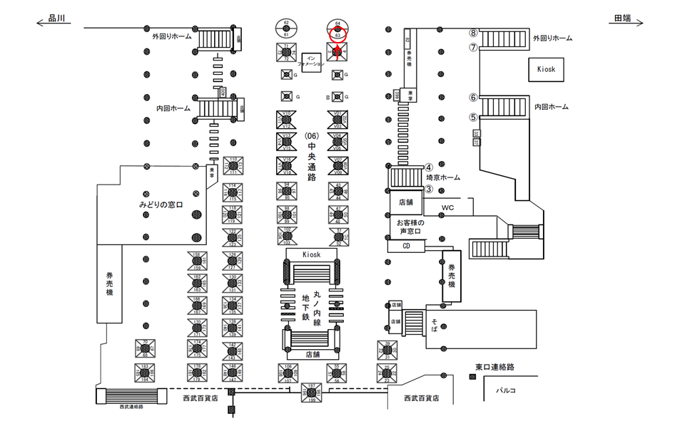 ○中央通路№64 改札外コンコース(中央通路 西口方面 柱) |