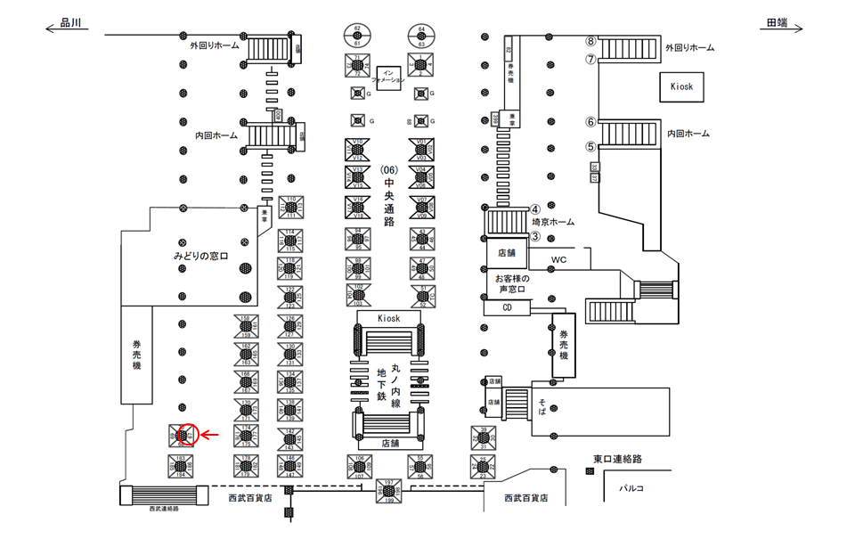 ○中央通路№181 改札外コンコース(中央通路 西武東口方面 柱) |