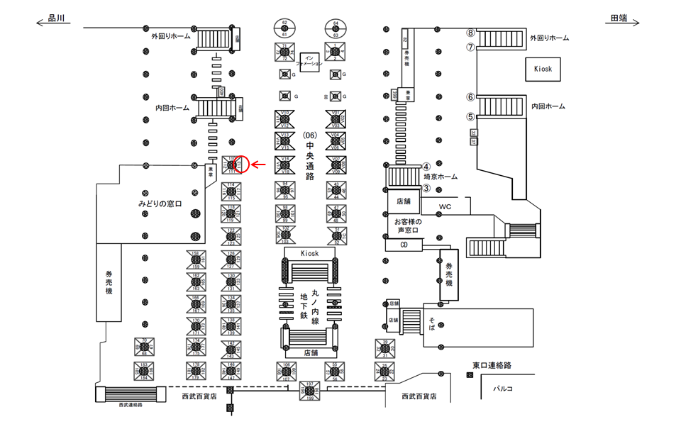 ○中央通路№174 改札外コンコース(中央通路 西武東口方面 柱) |