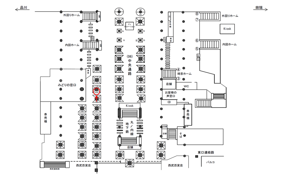 ○中央通路№118 改札外コンコース(中央通路 中央1改札付近 柱) |